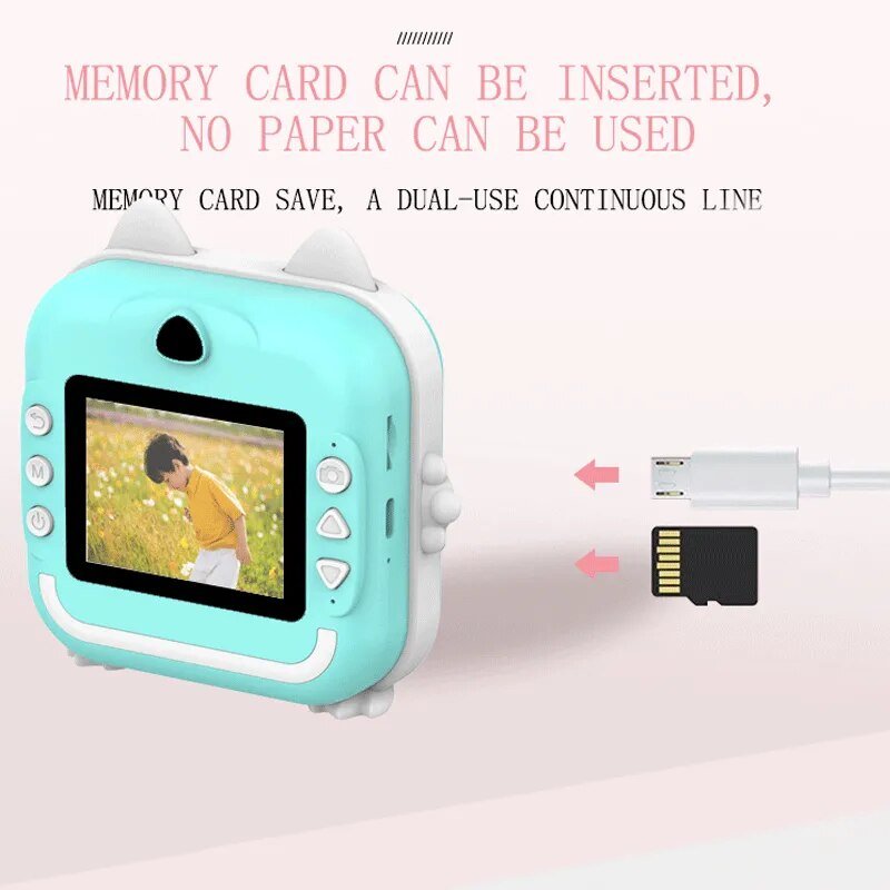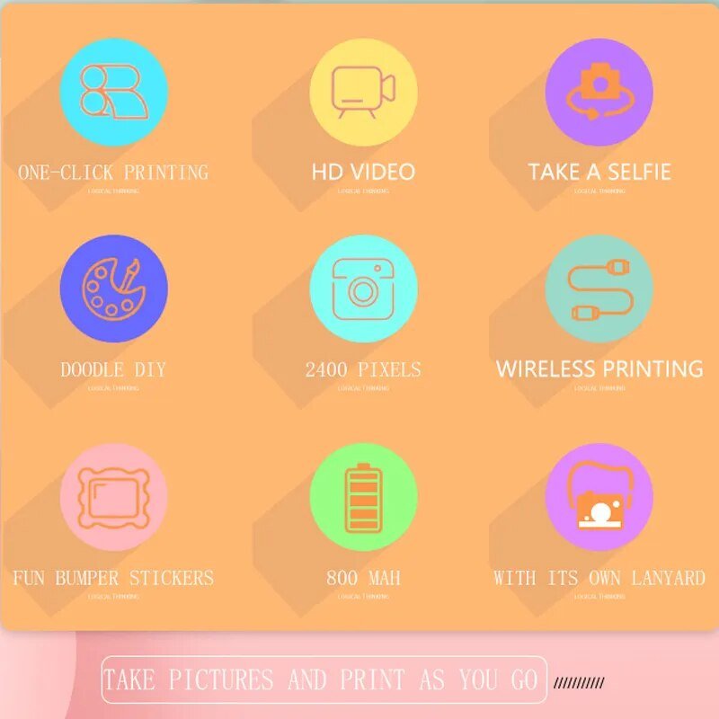 Kids Instant Camera 2.4Inch IPS Screen Full HD Instant Print Digital Camera Light Ear With Lanyard Birthday Gifts for Boys Gilrs