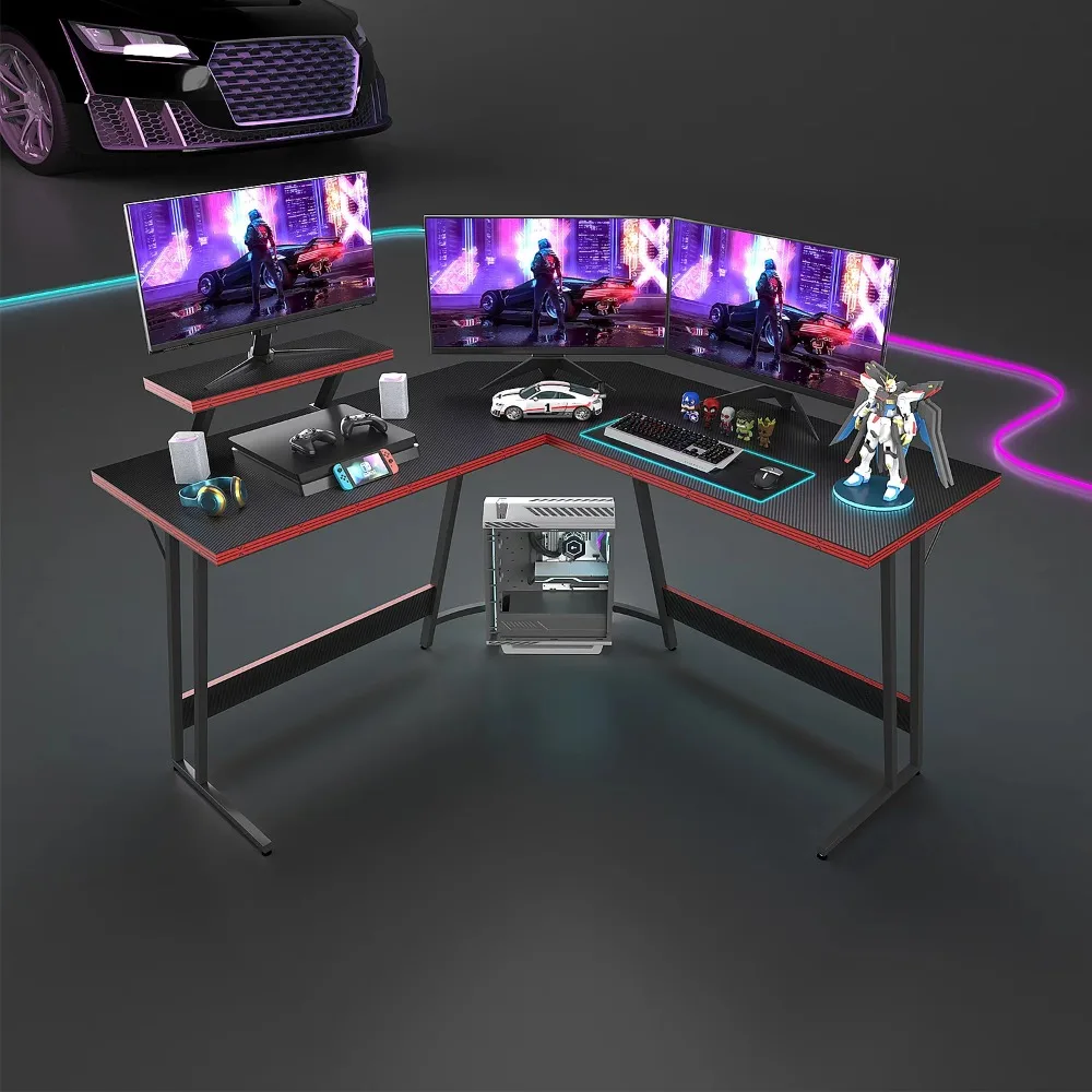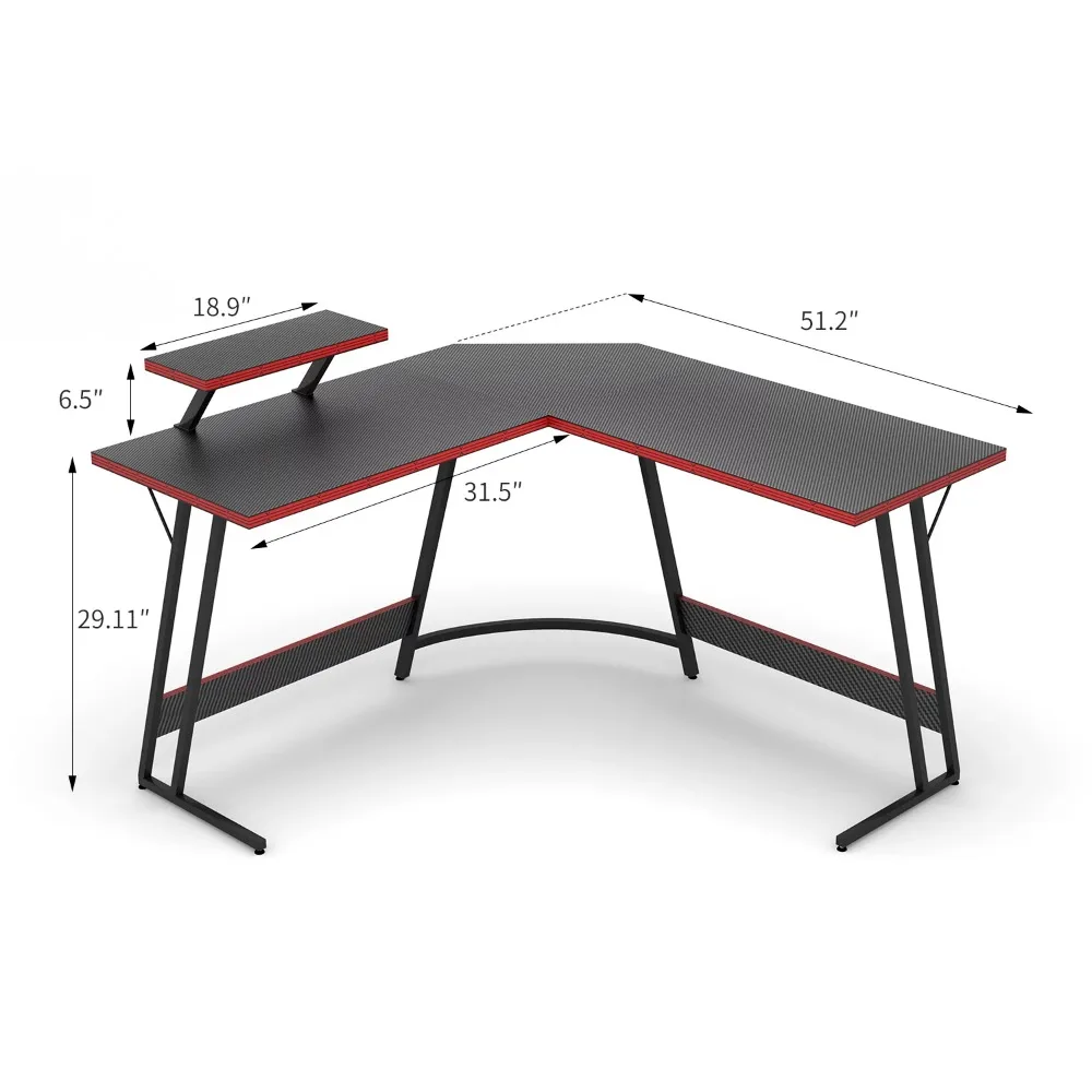 L-Shaped Gaming Desk Computer Corner PC Table with Large Monitor Riser Stand,Black 51 Inch